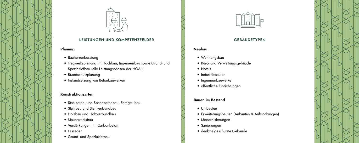 Ob komplexe Neubauten mit modernsten Anforderungen oder sensible historische Bausubstanz – wir entwickeln maßgeschneiderte Tragwerkslösungen, die Innovation, Nachhaltigkeit, Wirtschaftlichkeit und Ästhetik vereinen. Unser interdisziplinäres Team aus erfahrenen Ingenieuren begleitet jedes Projekt mit Leidenschaft, technischer Präzision und dem Anspruch an höchste Qualität. Dabei setzen wir auf nachhaltige Methoden und digitale Tools, um Bauprozesse effizient und zukunftsfähig zu gestalten.