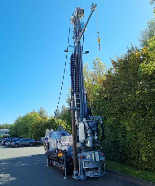 Nach erfolgreichem Einbau der Verrohrung wird ein Pumpversuch durchgeführt und der Brunnen anschließend klargepumpt. Wir sind komplett unabhängig von Strom und Wasser, da unsere Maschinen mit Verbrennungsmotoren laufen. Bitte achten Sie darauf, dass keine Versorgungsleitungen für das Haus unter der gewünschten Bohrstelle verlegt sind (Gas, Wasser, Strom, Telefon). Es muss eine Mindestdurchfahrtsbreite von 80 bis 150 cm gegeben sein (je nach Bohrgerät bzw. Bohrverfahren).