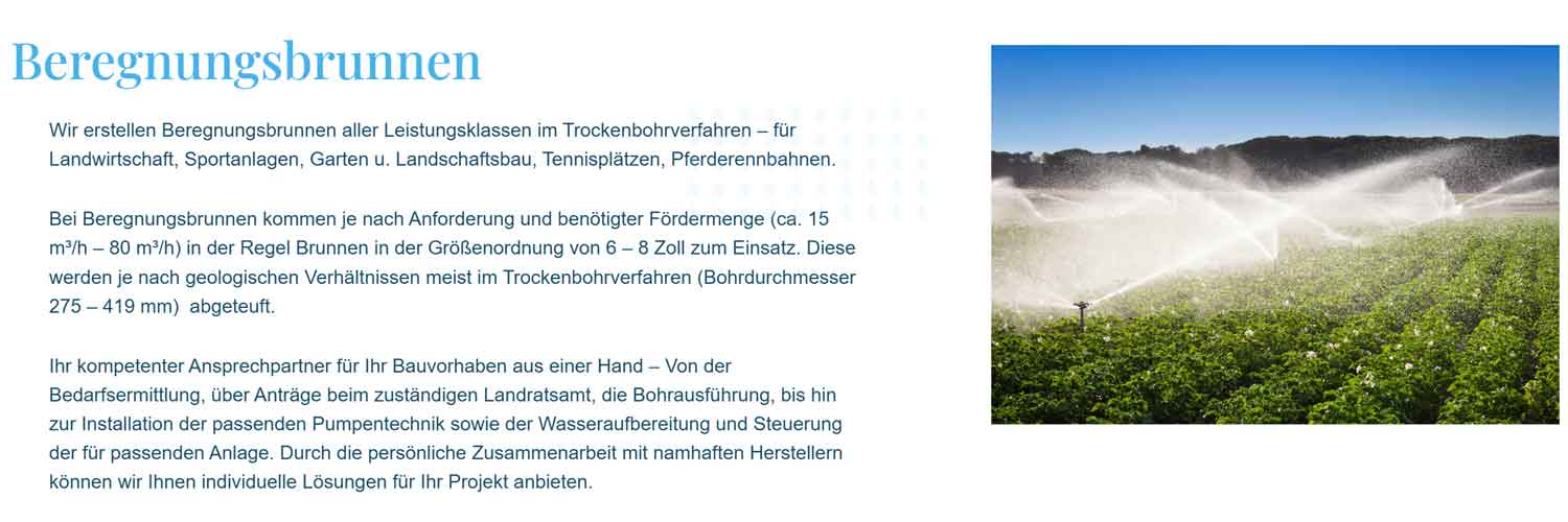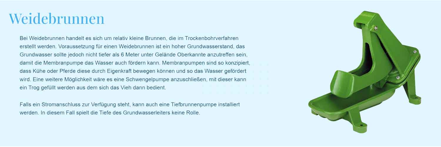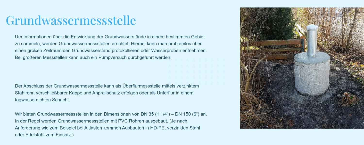 Ihr kompetenter Partner für Gartenbrunnen, Brunnen für Wasser- Wasser- Wärmepumpen, Grundwassermessstellen, Aufschlussbohrungen, Brunnen für die Landwirtschaft usw. im Trocken oder Spülbohrverfahren je nach Gegebenheit und Anforderung.