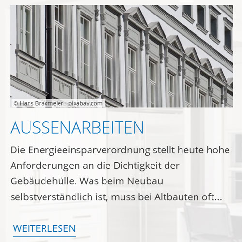 Die Fassade ist das Gesicht des Hauses, aber auch Ihr Schutzmantel. Eine regelmäßige Kontrolle von Make-up und Funktion ist deshalb richtig wichtig. Die schnelle Beseitigung kleiner Risse und anderer scheinbar unbedeutender Schäden kann viel Aufwand, Kosten und Zeit sparen.