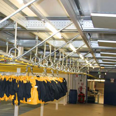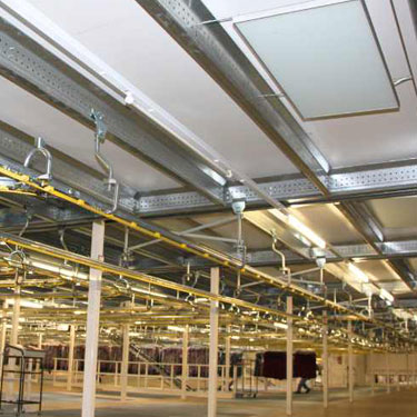 An Systeme zur Beheizung von Hallen und großen Räumen werden je nach Nutzungsart wie beispielsweise einer Werkhalle, Lagerhalle, Produktionshalle oder Fahrzeughalle unterschiedliche Anforderungen gestellt. Diese reichen von der gleichmäßigen Temperierung großer Flächen bis hin zur gezielten Beheizung einzelner Arbeitsplätze. Für die gleichmäßige Temperierung einer Halle führt die Vitramo- Infrarotheizung dem wärmegedämmten Boden mittels Infrarotstrahlung kontinuierlich so viel Wärme zu, dass die Temperatur am Boden auf dem gewünschten Niveau konstant bleibt. Tag- und nachtbedingte Temperaturunterschiede werden durch das Speichervermögen des Hallenbodens ausgeglichen. Da sich die Luft in der Halle nicht direkt an den Heizelementen, sondern am Hallenboden erwärmt, ist die Temperatur der Raumluft ca. 1,5 Kelvin niedriger, ohne das Behaglichkeitsempfinden des Menschen zu beeinträchtigen. Deshalb geht beim Öffnen der Hallentore oder Lüften auch weniger Wärmeenergie als bei reinen Luftheizungen verloren und aufgrund der geringen Thermik bleibt die erwärmte Luft im Aufenthaltsbereich der Menschen.